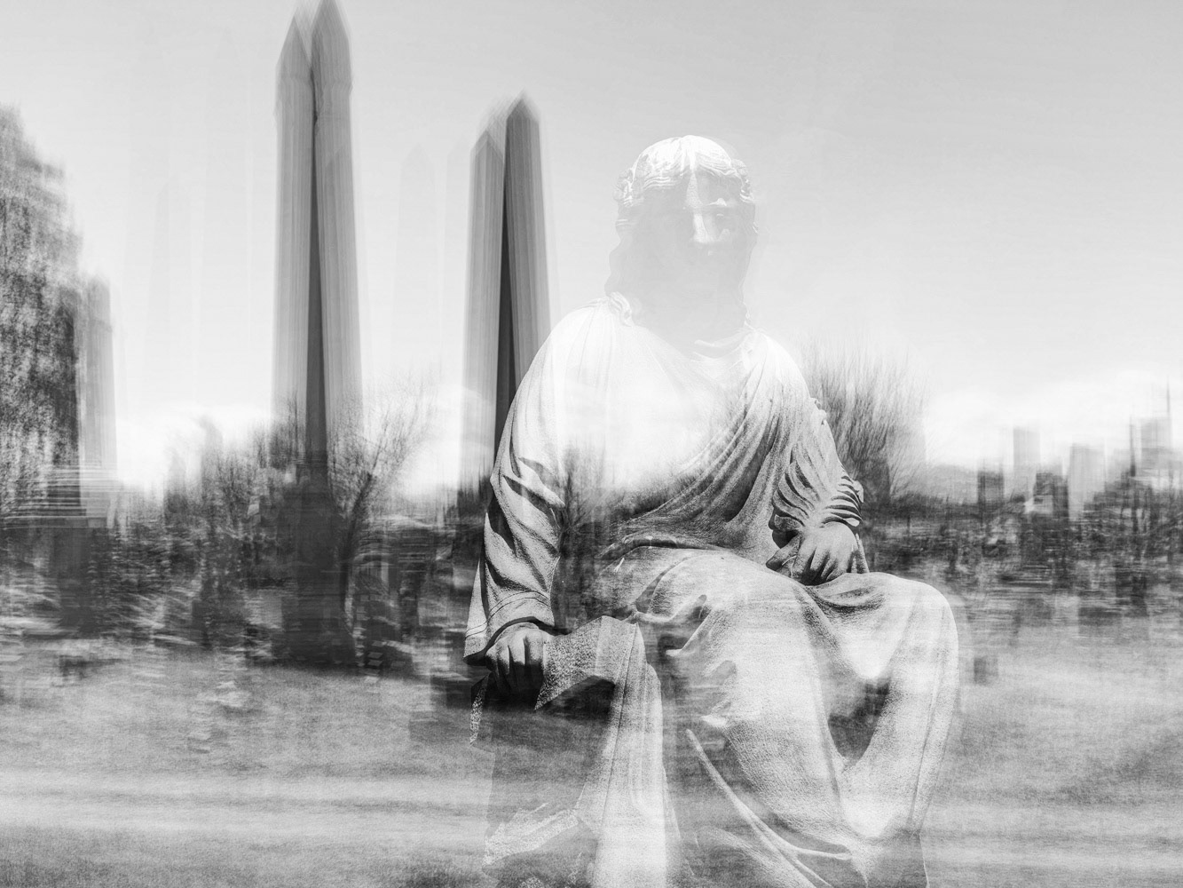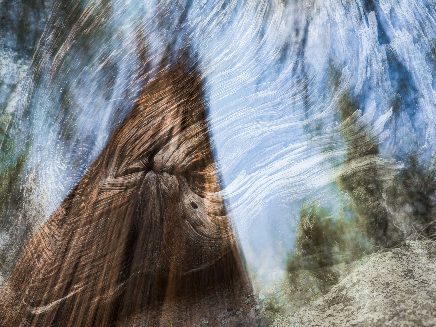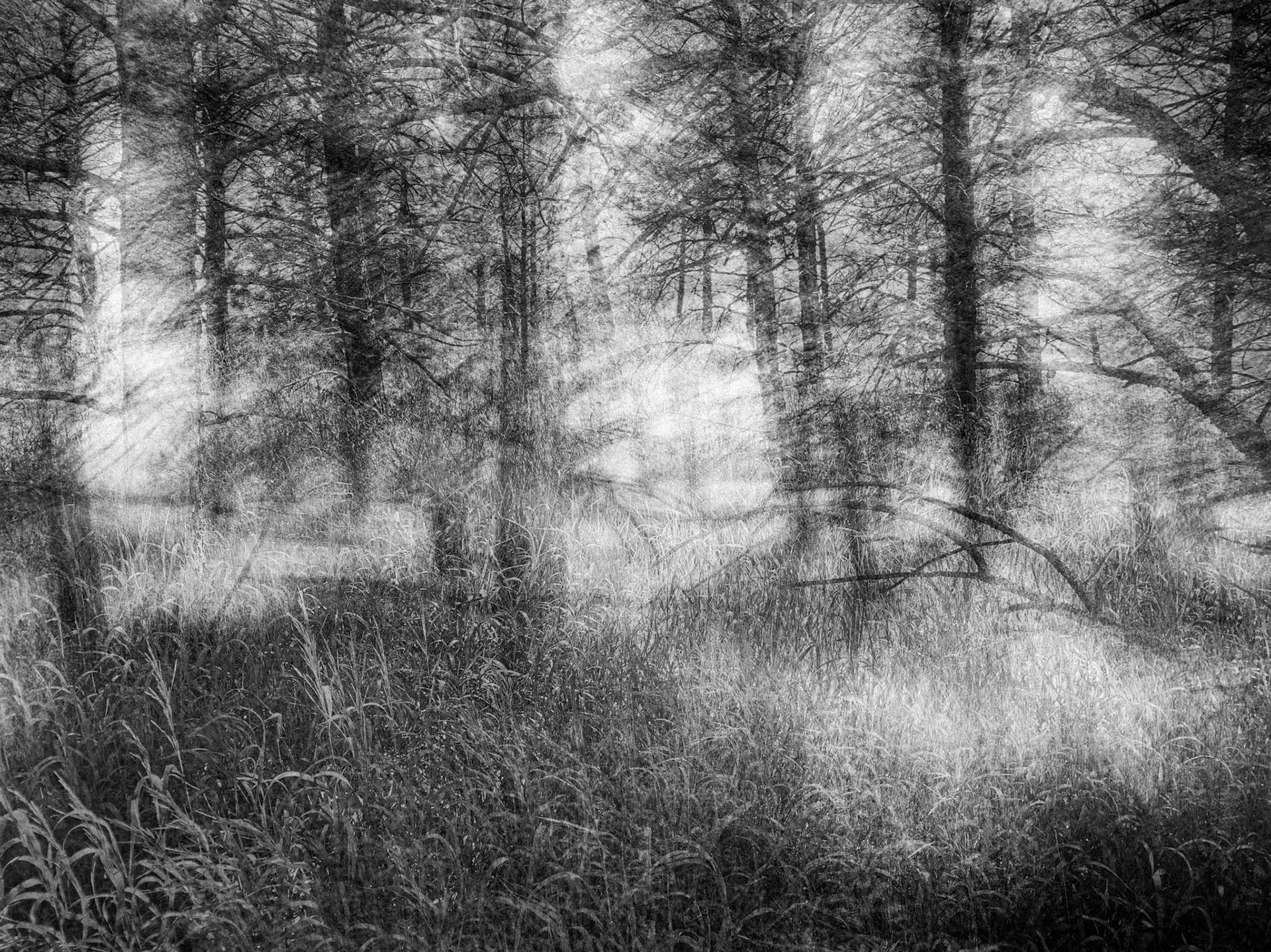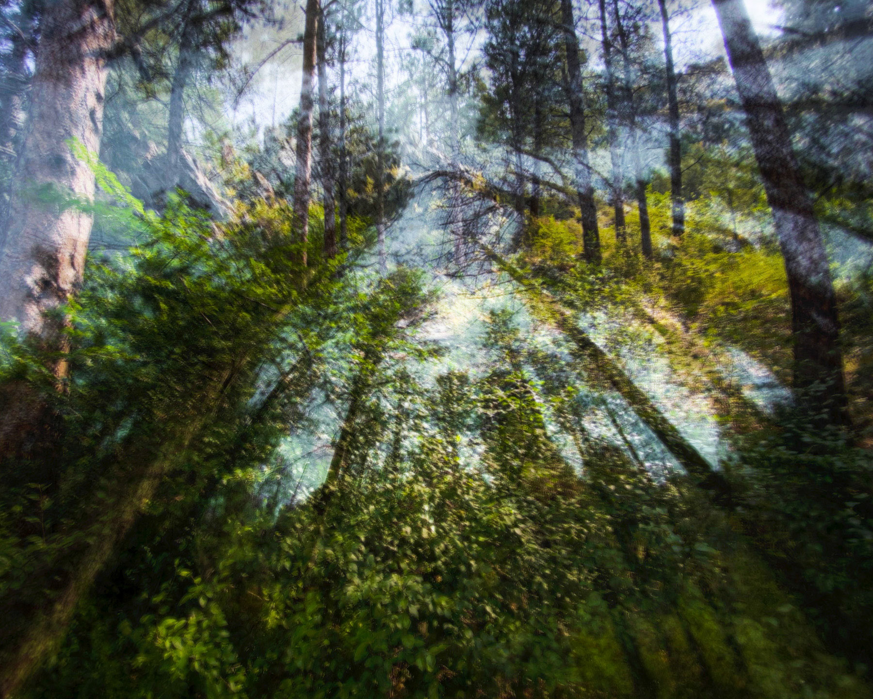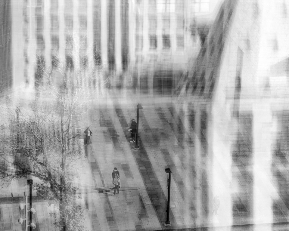 Using an iPhone with a shutter speed set for 4-seconds I hold steady for a beat, then slowly move and re-frame for the remainder of exposure.